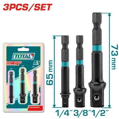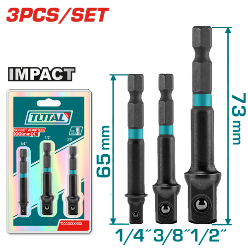 ADAPTADOR DE ATORNILLADOR DE IMPACTO PARA LLAVES TUBO 1/4 - 3/8 - 1/2 (3 PZS) - TOTAL