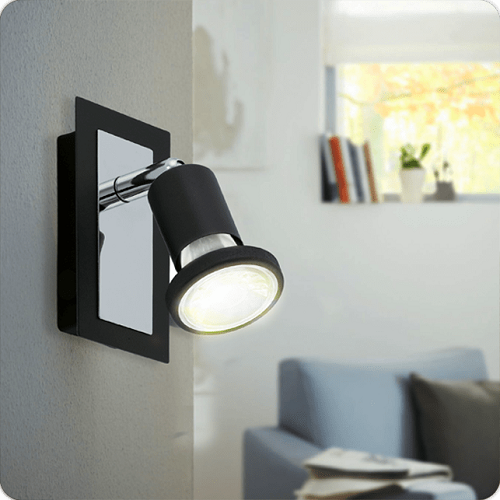 APLIQUE SARRIA GU10 DE 1 LUZ C/ LAMP LED 5W CALIDA NEGRO/CROMO EGLO