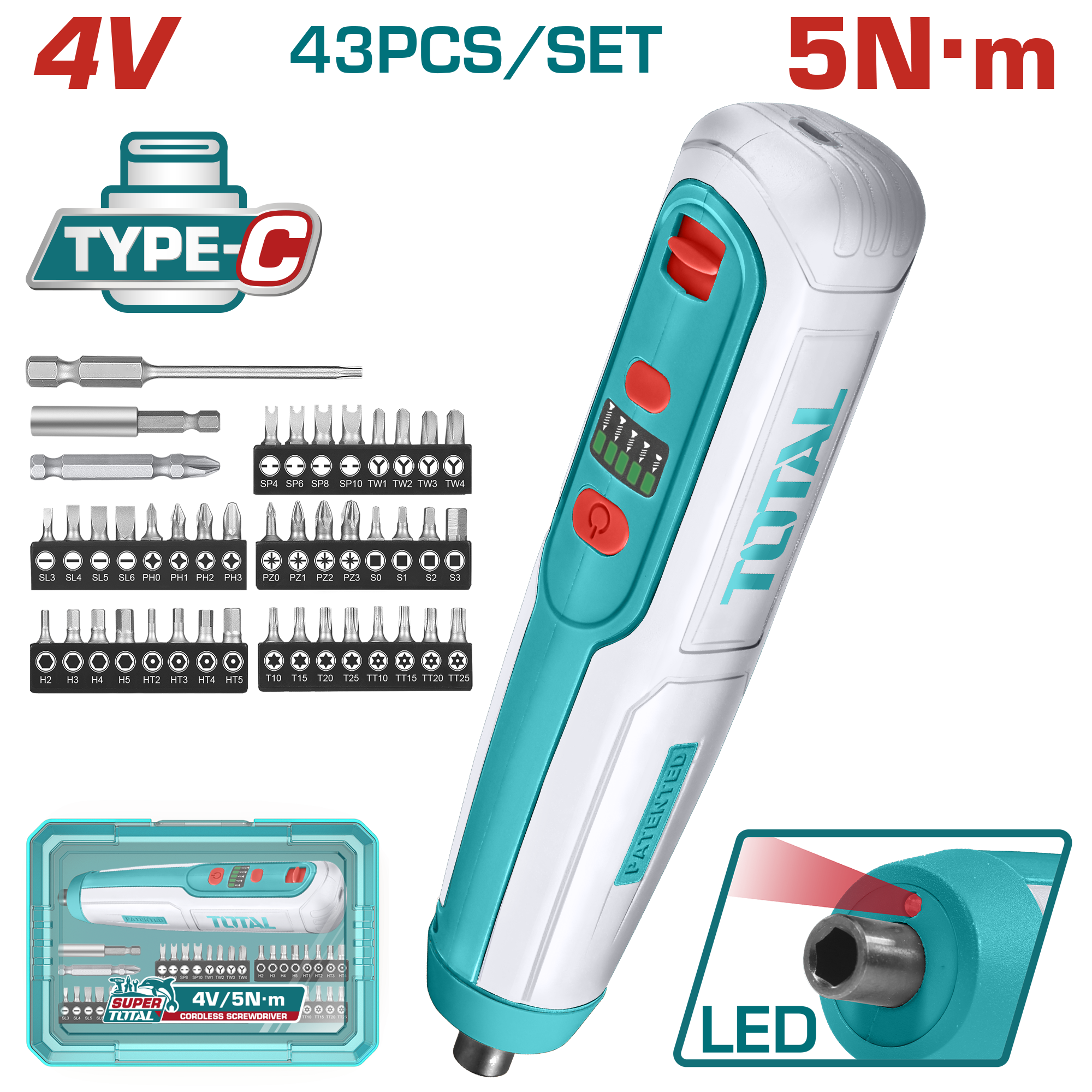 ATORNILLADOR A BATERÍA INTEGRADA 4V 5NM (RECTO) - TSDLI04062 - TOTAL