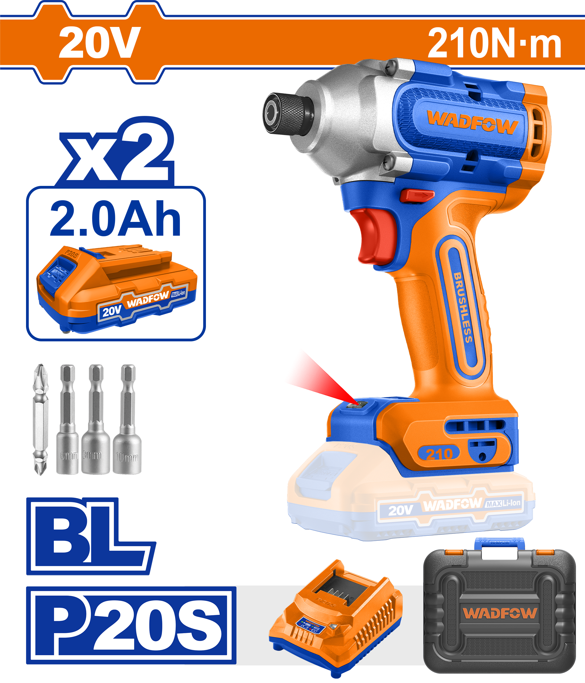 ATORNILLADOR DE IMPACTO A BATERIA 20V 210NM - BAT/CAR - WCD2B21 - WADFOW