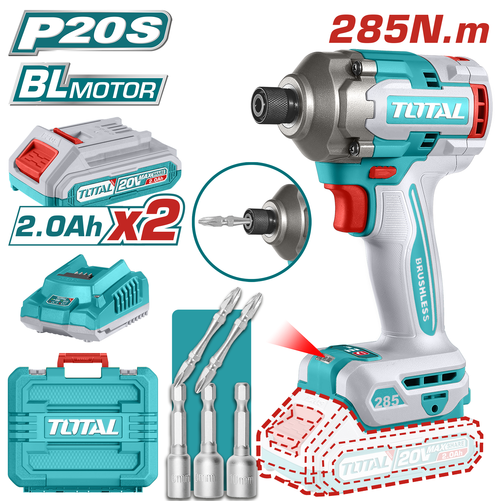 ATORNILLADOR DE IMPACTO A BATERÍA 20V 285NM BL - 2BAT/CAR - TIRLI2028 - TOTAL