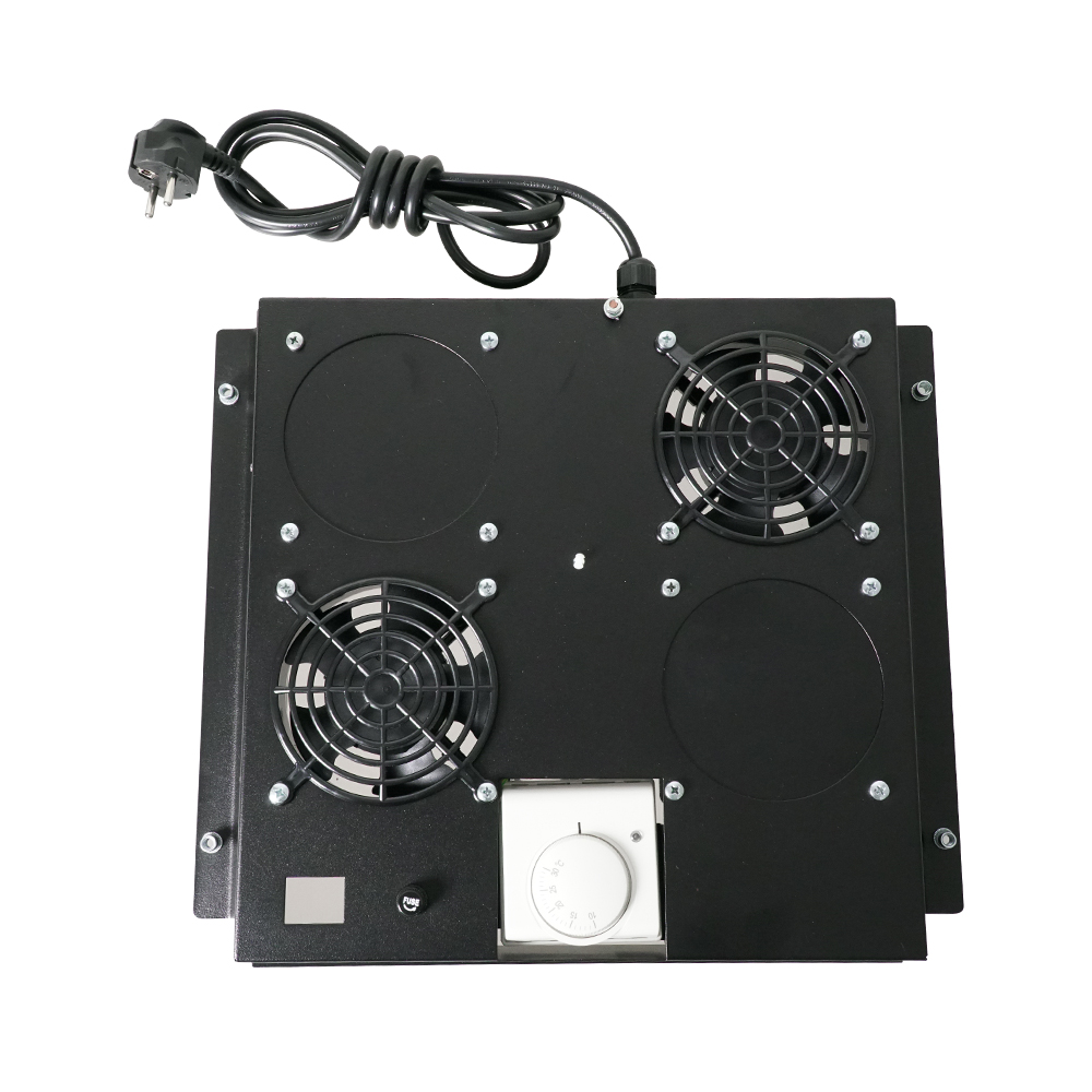 Ventilador para gabinetes de chapa metálica Canovate, uno de los accesorios del gabinete rack de 19 '', son soluciones con termostatos analógicos diseñados para tener un nivel de ruido mínimo para asegurar el flujo de aire dentro del gabinete.