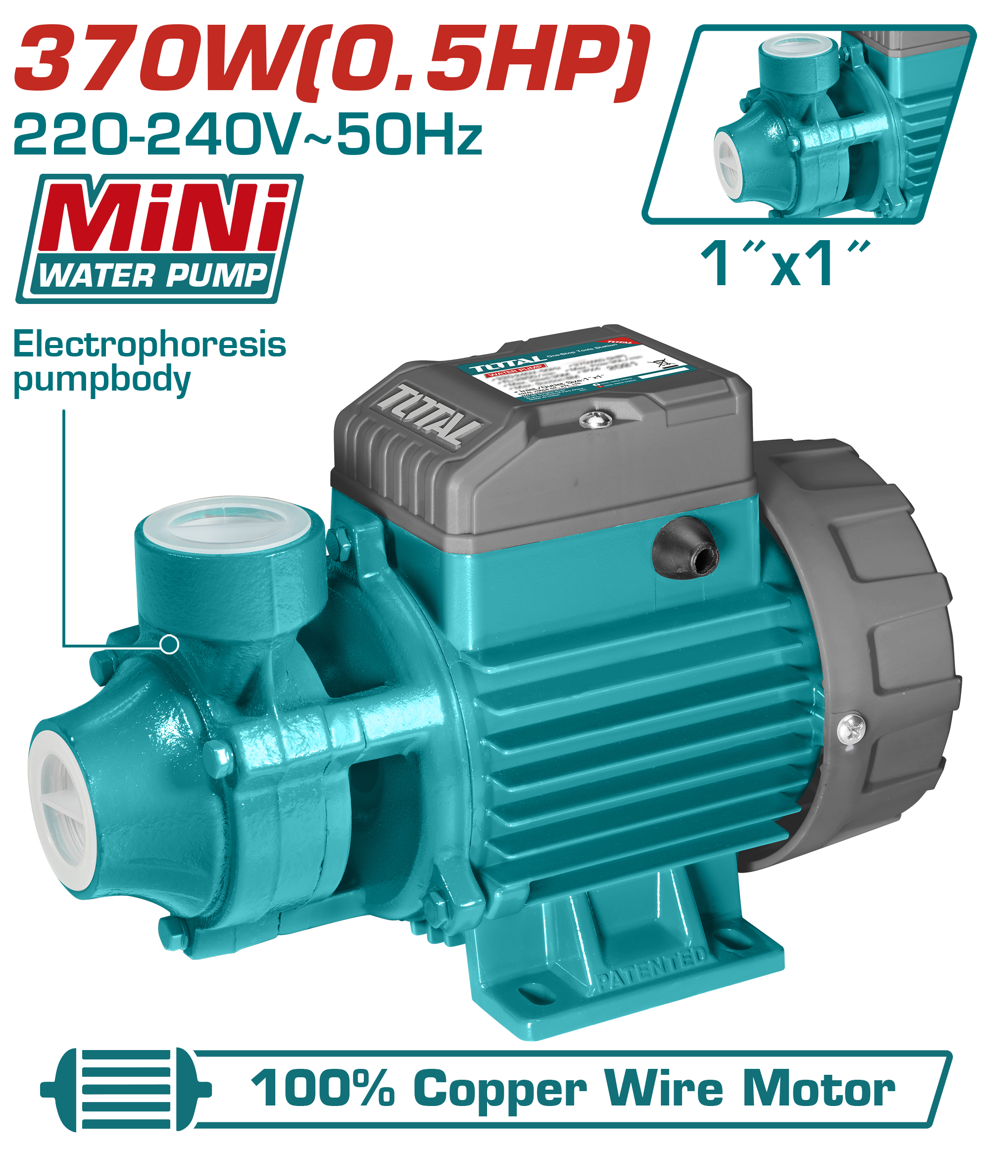 BOMBA DE AGUA PERIFERICA MINI 0.5HP 30MTS 30LTS/MIN (1PULG) - TWP137026 - TOTAL