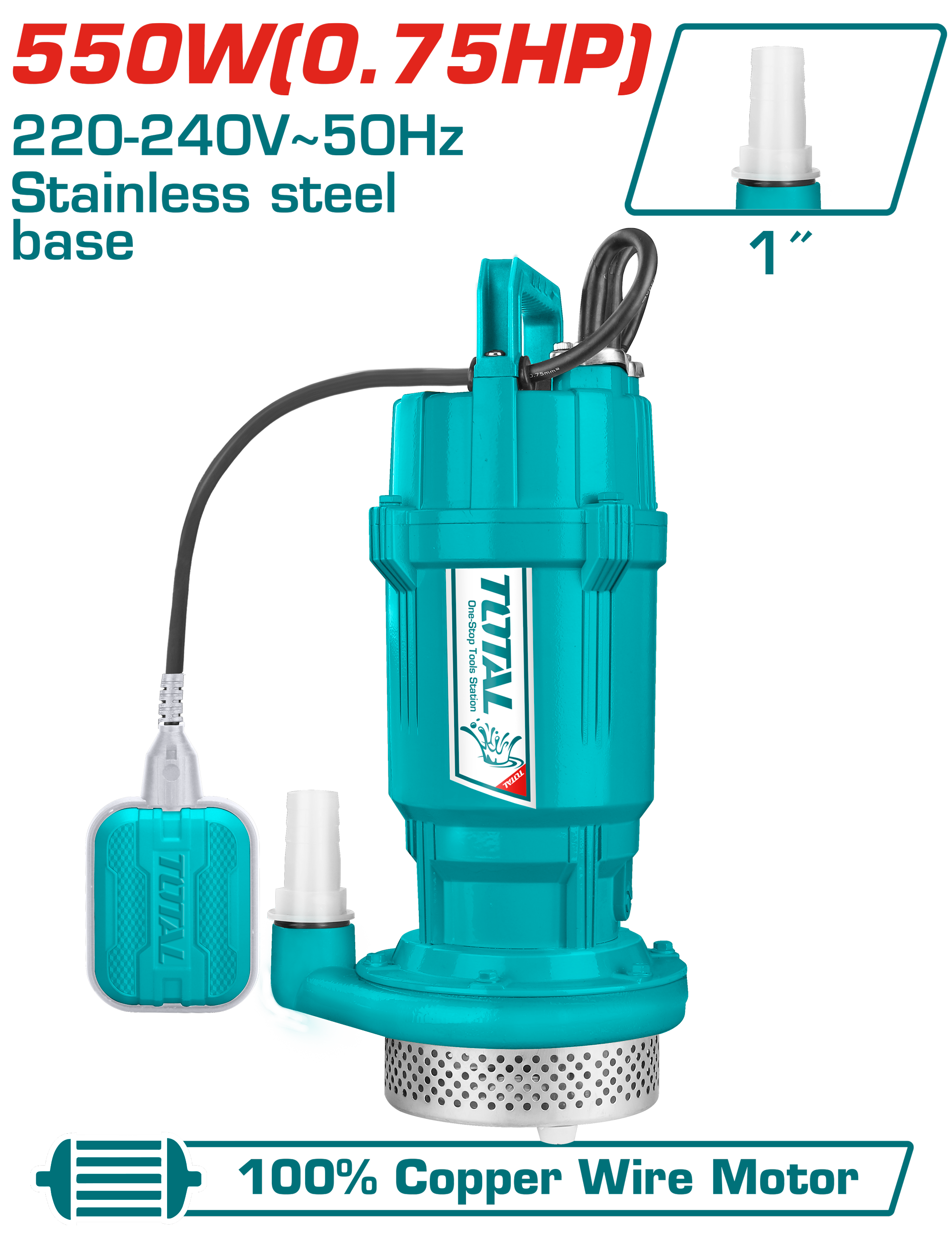BOMBA DE AGUA SUMERGIBLE INOX 0.75HP 25MTS 117L/MIN (1PULG) - TOTAL