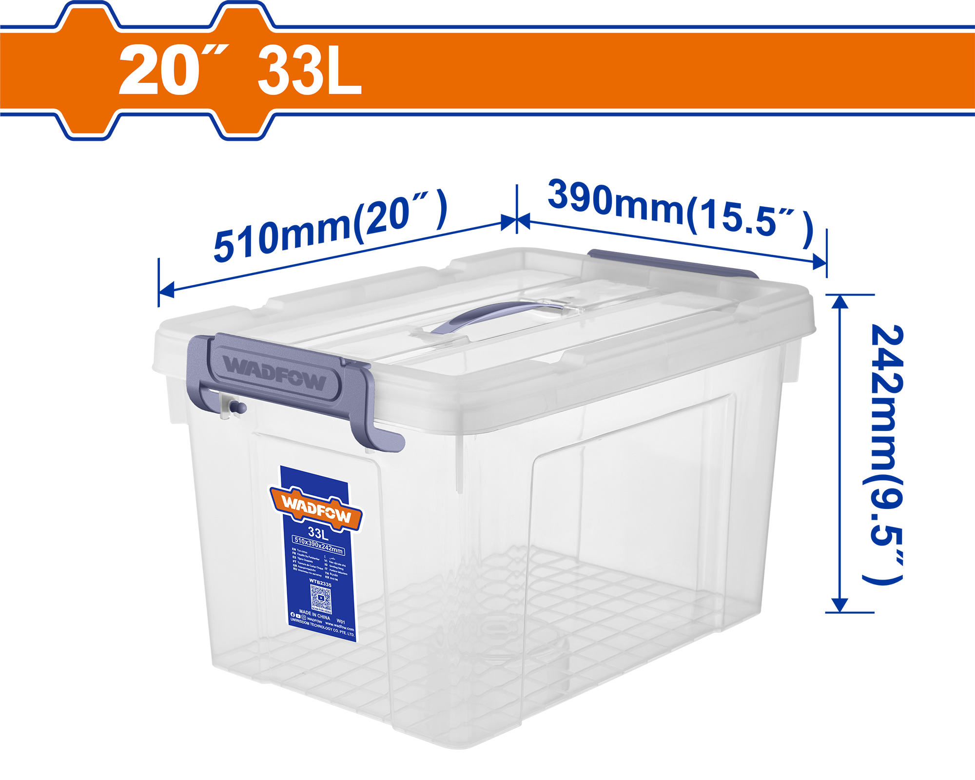 CAJA DE ALMACENAMIENTO PLASTICO TRANSPARENTE 33L - WADFOW