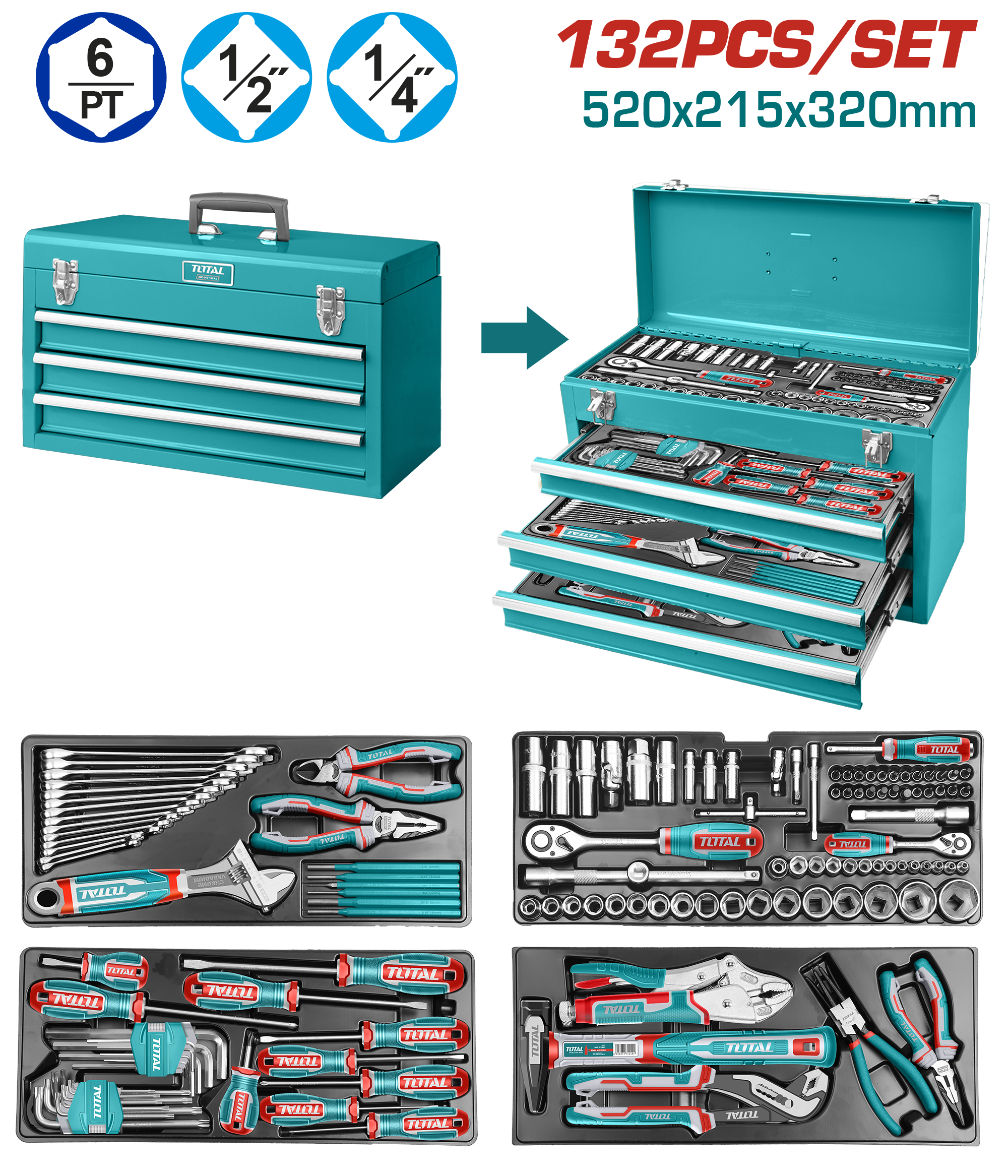 CAJA DE HERRAMIENTAS METÁLICA CON JUEGO DE HERRAMIENTAS (132 PZS) - TOTAL