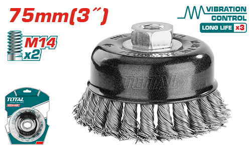 CEPILLO DE COPA DE ALAMBRE TRENZADO 75MM (ROSCA 1/4) INDUSTRIAL - TOTAL