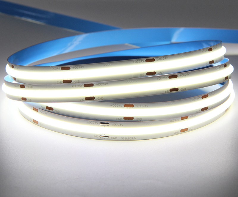 Cinta flexible COB, alto índice de reproducción de color, sin zonas oscuras, resistente a la flexión.