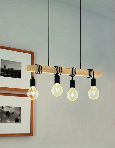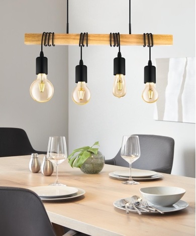 COLGANTE TOWNSHEND E27 DE 4 LUCES NEGRO/MADERA EGLO