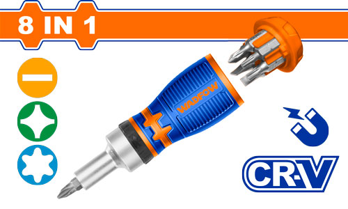DESTORNILLADOR PUNTA INTERCAMBIABLE (8 EN 1) CON CARRACA - CRV - WADFOW