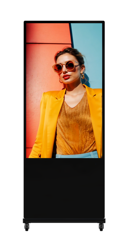 -Apariencia de carcasa metálica, marco delgado y diseño integral, ideal para exhibiciones publicitarias en entradas de tiendas.