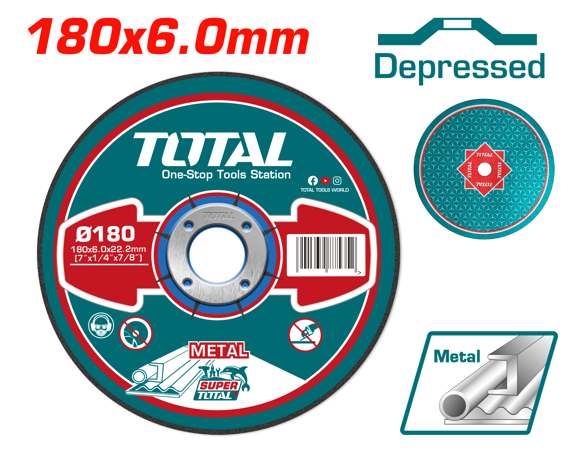 DISCO DE DESBASTE METAL CENTRO DEPRIMIDO 180X6.0 -TOTAL