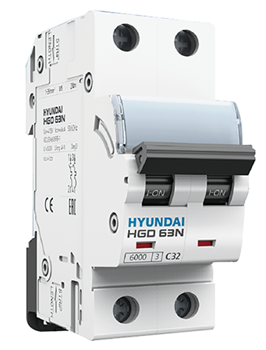 DISYUNTOR TERMOMAGNETICO RIEL DIN 2X050A 6KA NUEVA LINEA HGD63-N-HYUNDAI