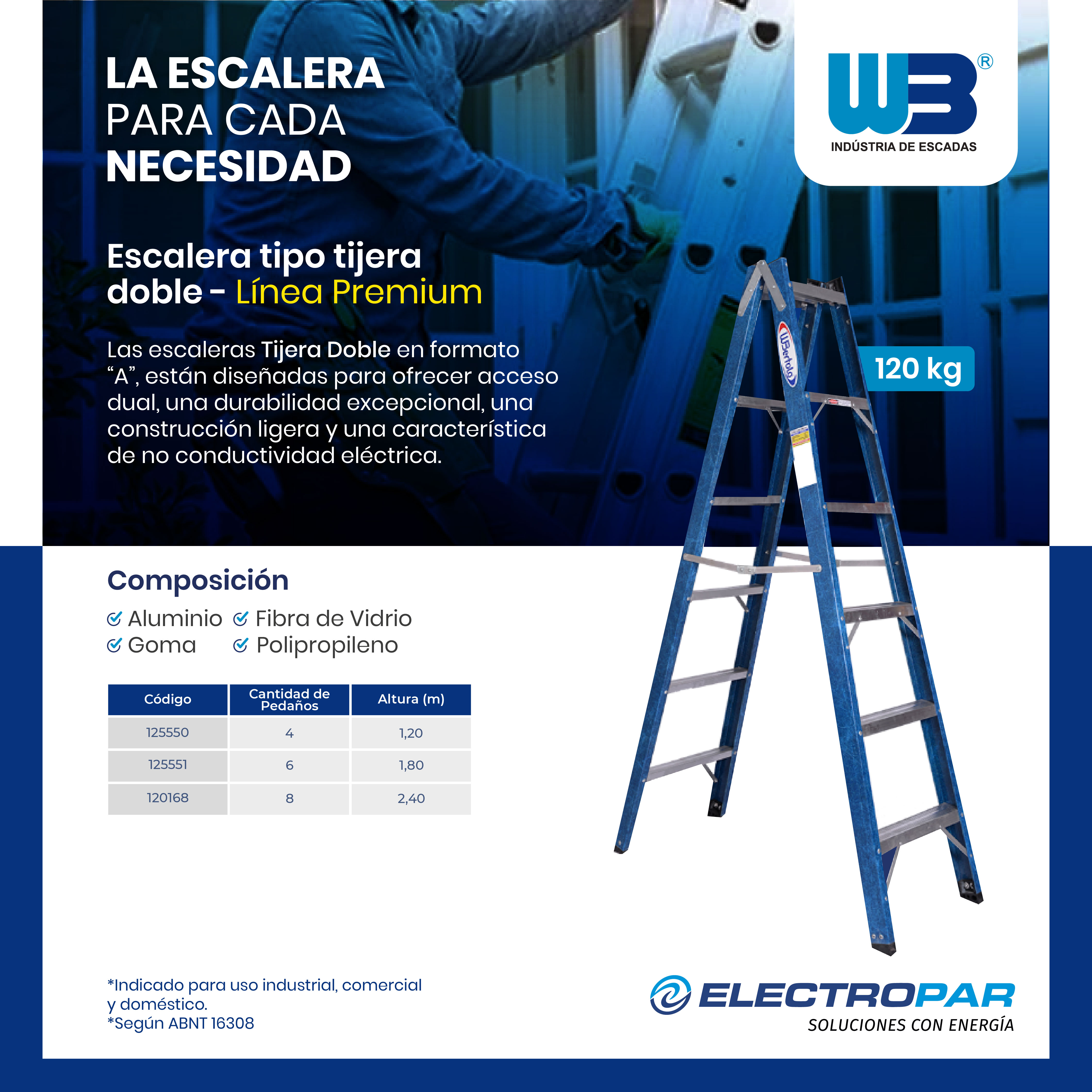 ESCALERA DE FIBRA DE VIDRIO - PREMIUM - TIJERA DOBLE - 8P - 2,40 M - WBERTOLO