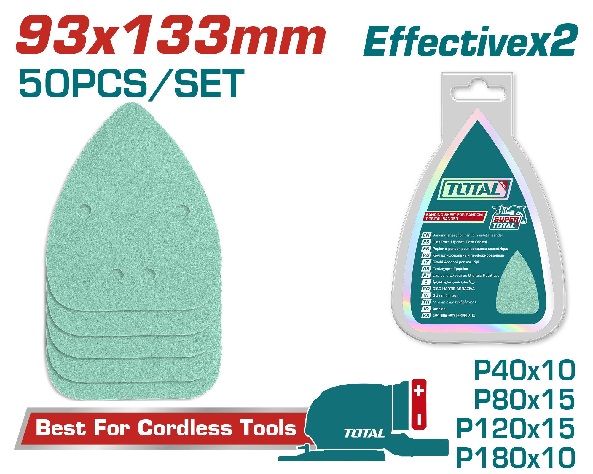 HOJA DE LIJA P/ LIJADORA ORBITAL DE PALMA (EFECTIVIDAD X 2) (50 PZS) - TOTAL