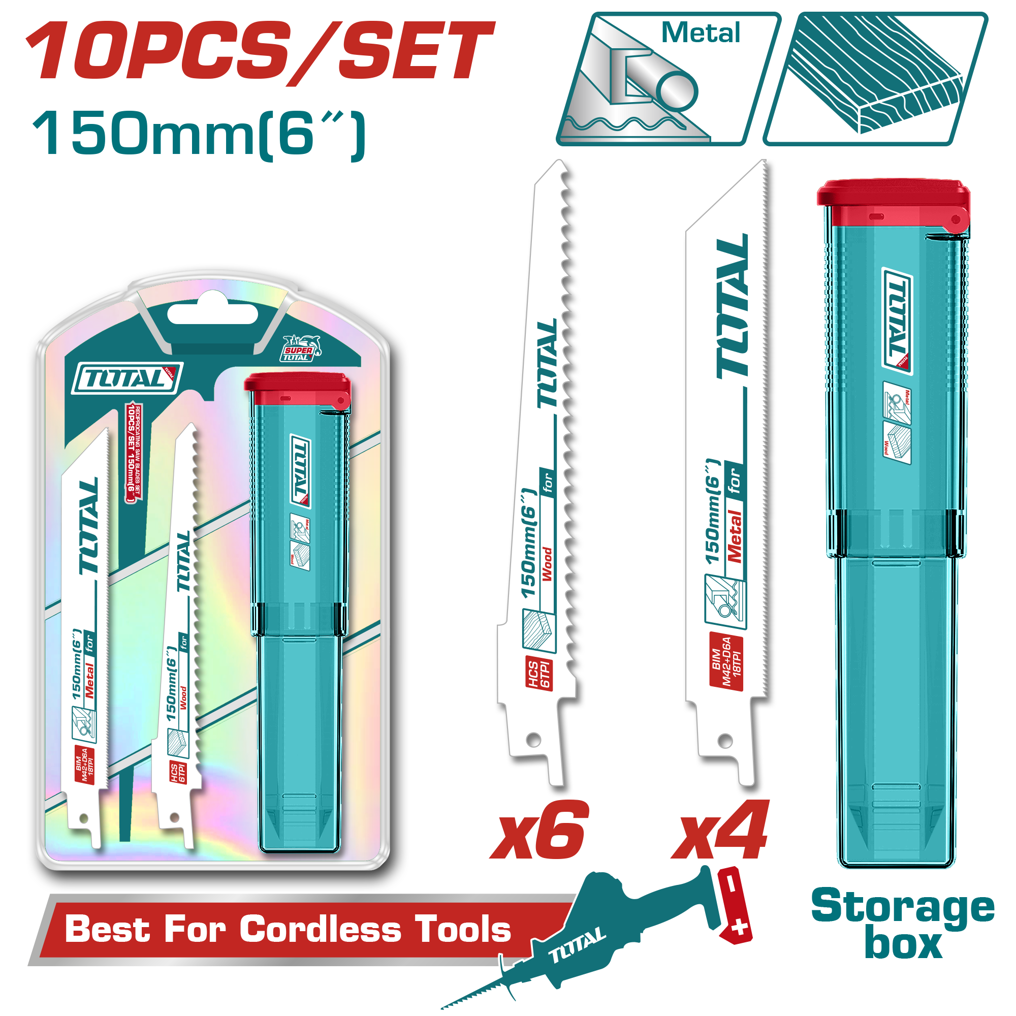 HOJA DE SIERRA RECIPROCA (SABLE) PARA MADERA Y METAL 150MM (10 PZS) - TOTAL