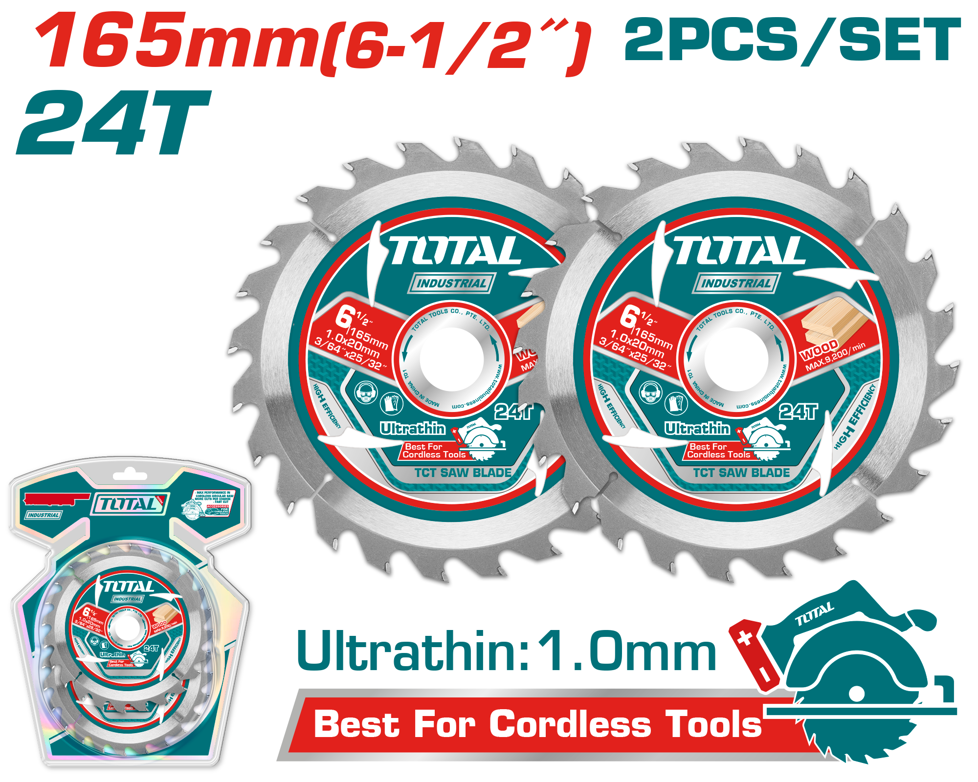 HOJA DE SIERRA TCT (CORTE MADERA) 165X1MM 24T (2 PZS) - TOTAL