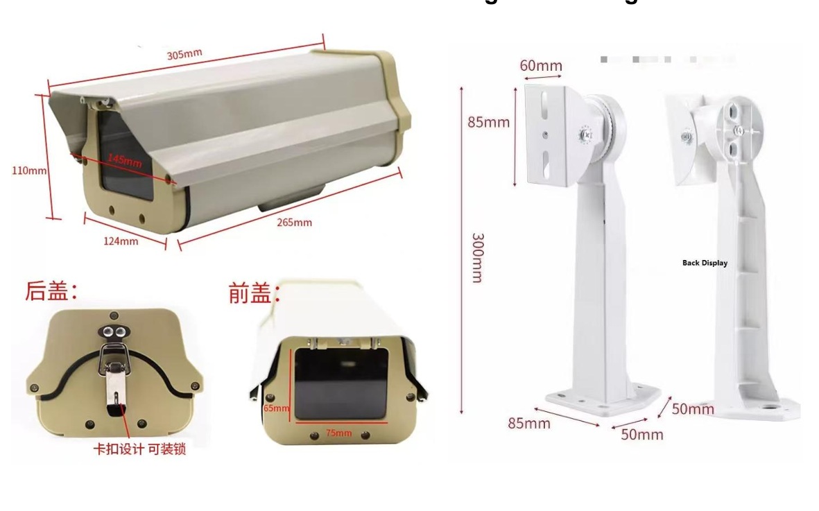 Diseñado para proteger cámaras de vigilancia de condiciones exteriores (lluvia, polvo, temperaturas extremas), prolongar la vida útil de la cámara y permitir un montaje en pared seguro y ajustable para lograr ángulos de visión óptimos. Ideal para sistemas de seguridad en exteriores, estacionamientos, perímetros de edificios y monitoreo industrial.