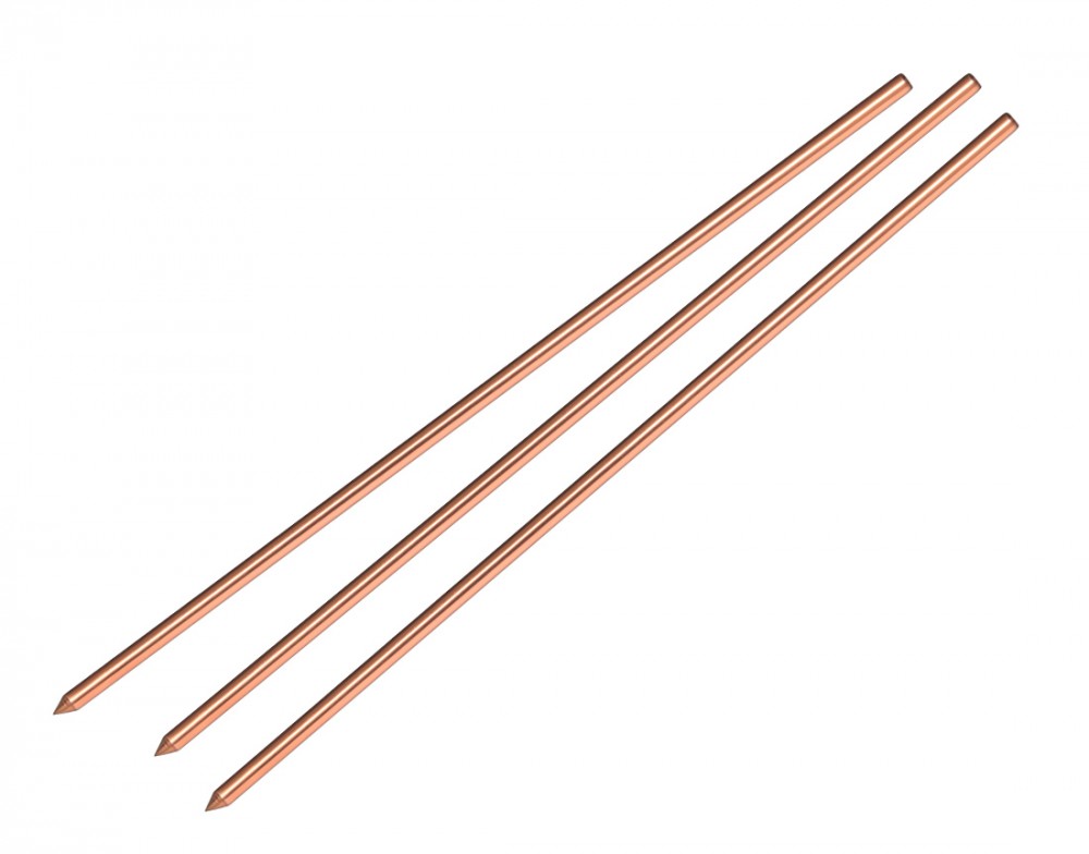 - Material: Fabricadas con nucleo de acero carbono, revestido de cobre de pureza minima de 95% sin trazos de Zinc.