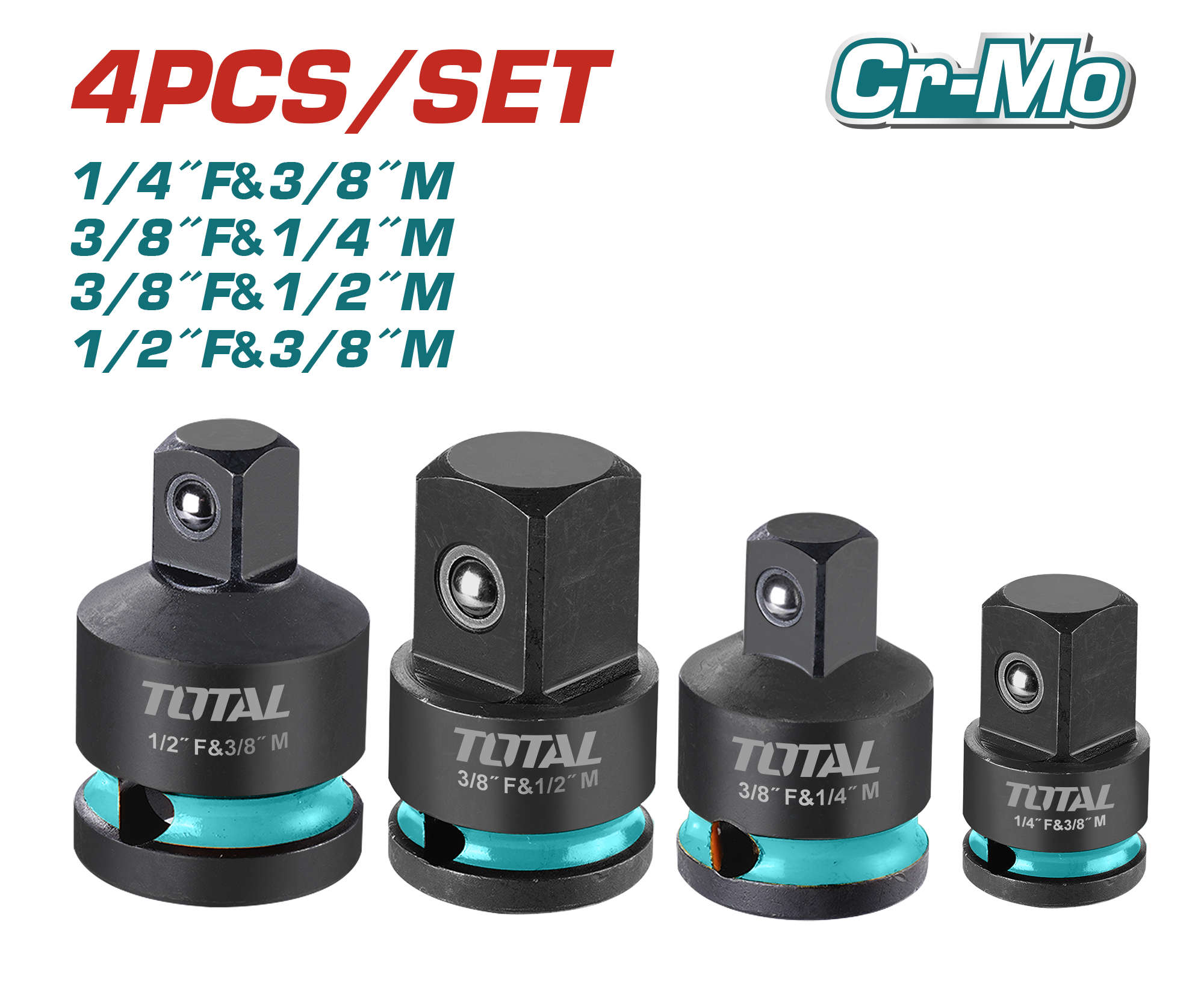 JUEGO DE ADAPTADORES LLAVE TUBO DE IMPACTO (4 PZS) - TOTAL