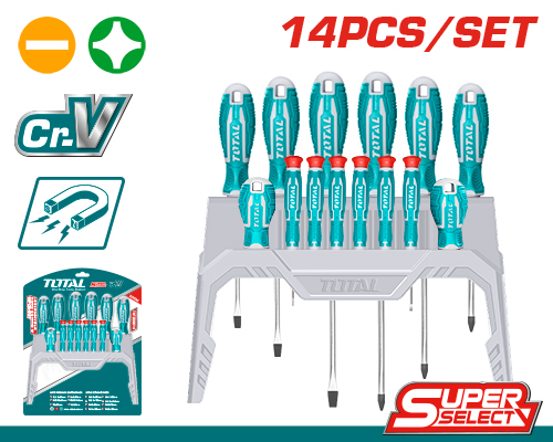 JUEGO DE DESTORNILLADORES Y DESTORNILLADORES JOYERO (14 PZS) - CRV - TOTAL