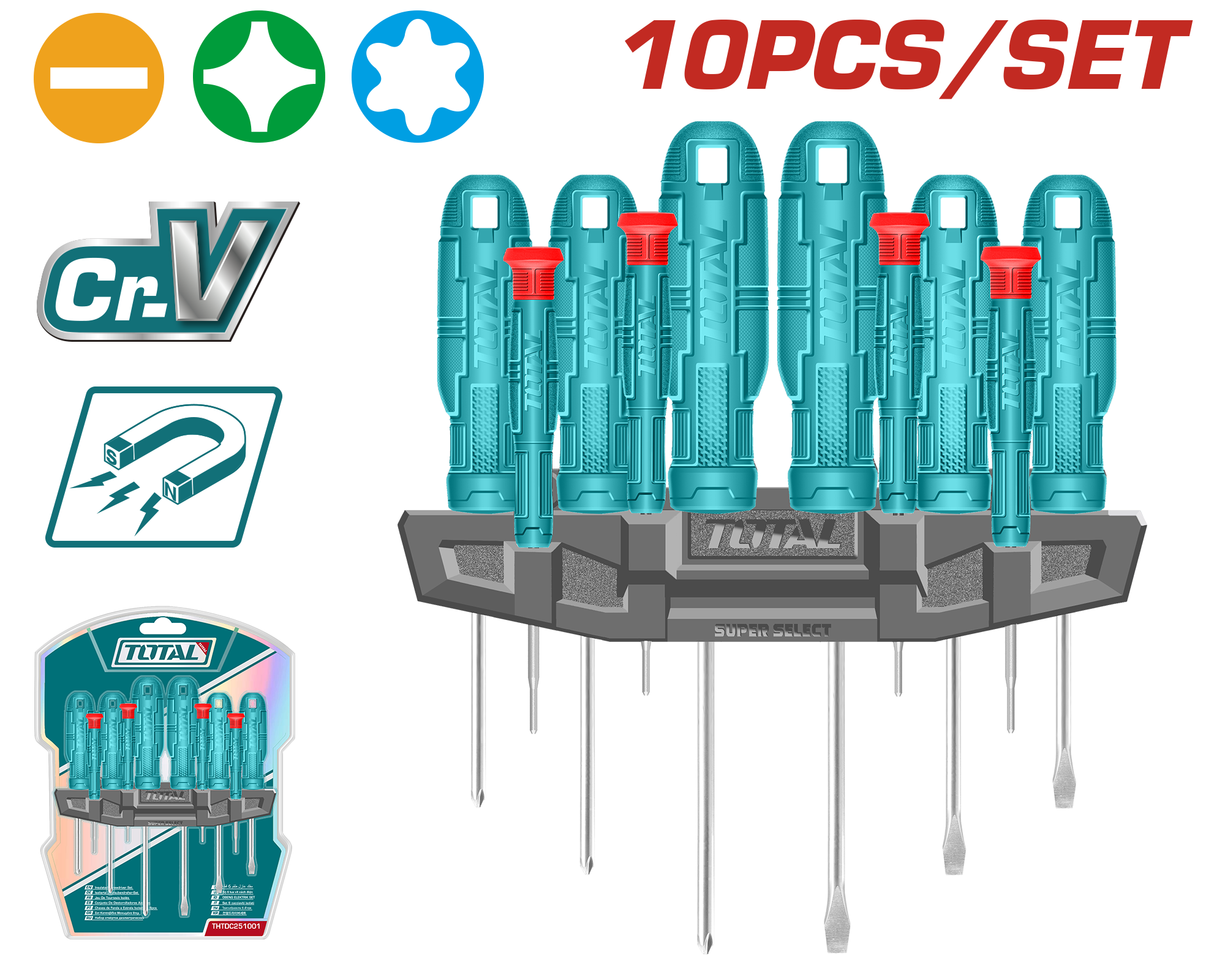 JUEGO DE DESTORNILLADORES Y PRESICION (MANGO PLASTICO) (10 PZS) - TOTAL