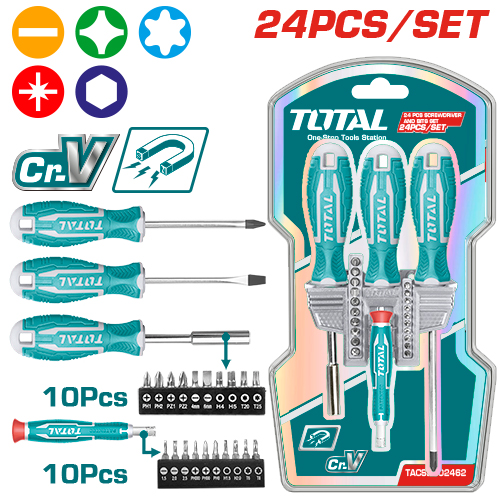 JUEGO DE DESTORNILLADORES Y PUNTAS (24 PZS) - CRV - TOTAL
