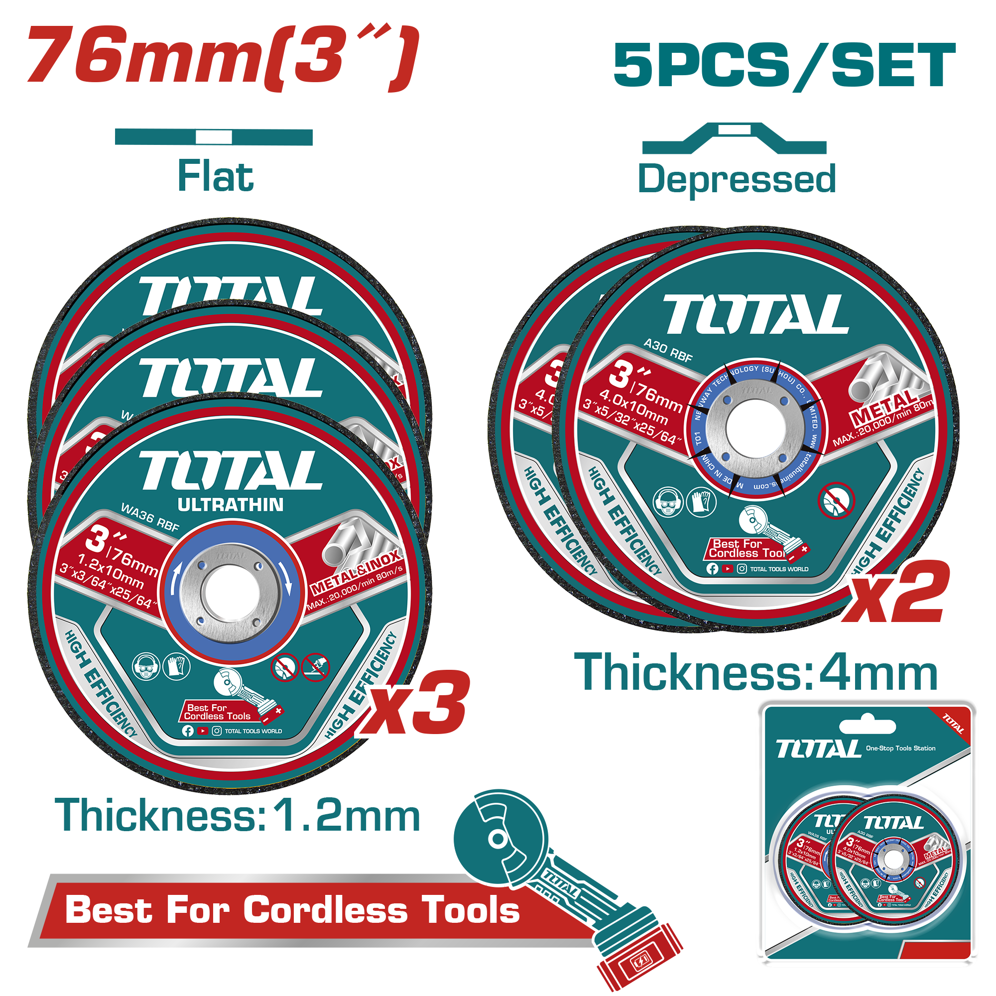 JUEGO DE DISCOS DE CORTE 76MM PARA MINI AMOLADORA (5 PZS) - TOTAL