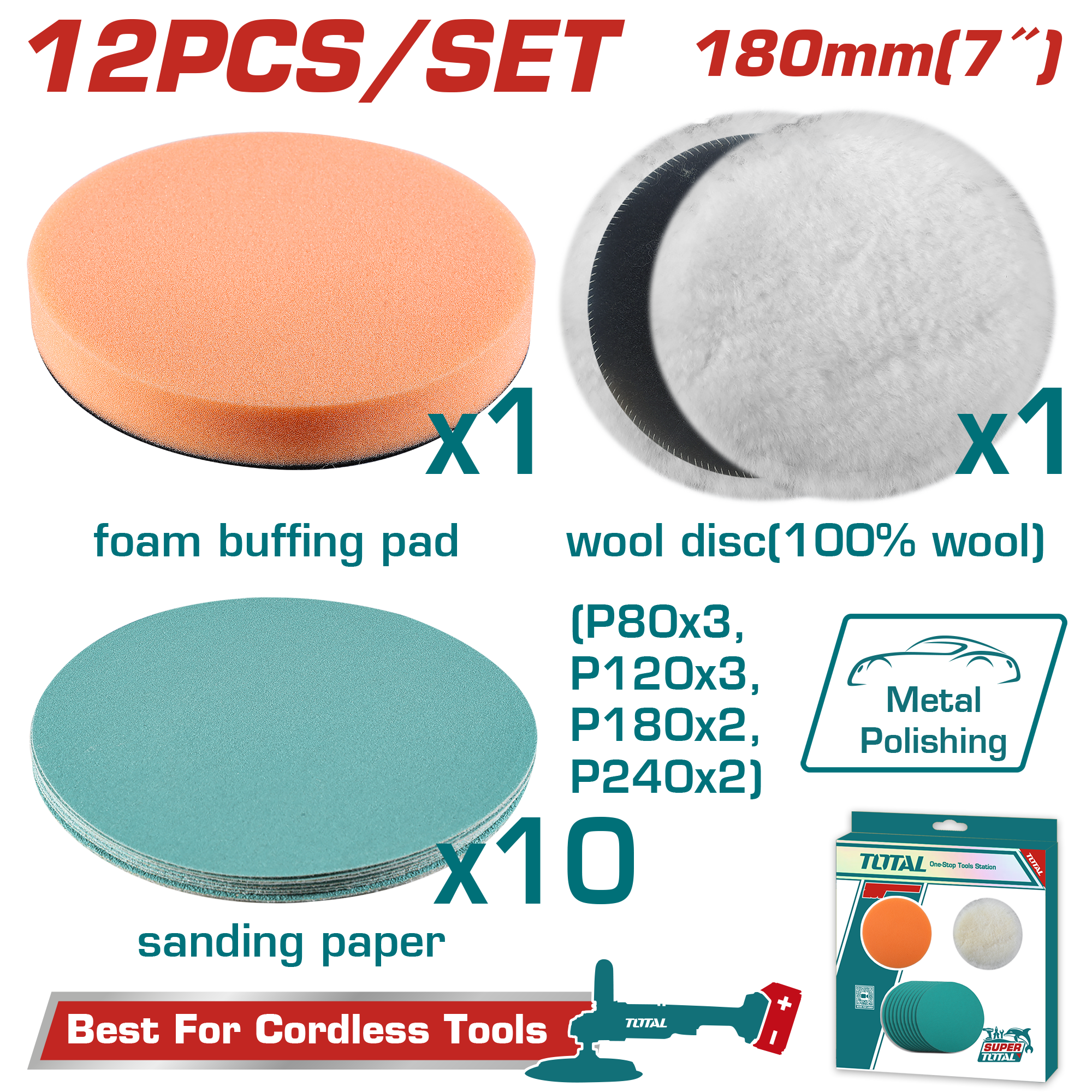JUEGO DE ESPONJA Y BOINA FELPA P/PULIDORA 180MM - TOTAL