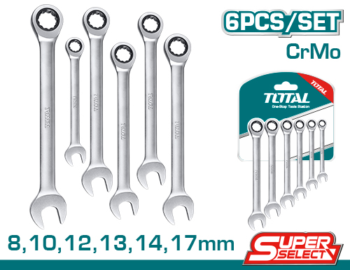 JUEGO DE LLAVES CON TRINQUETE 8-17MM (6 PZS) - CR-MO - TOTAL