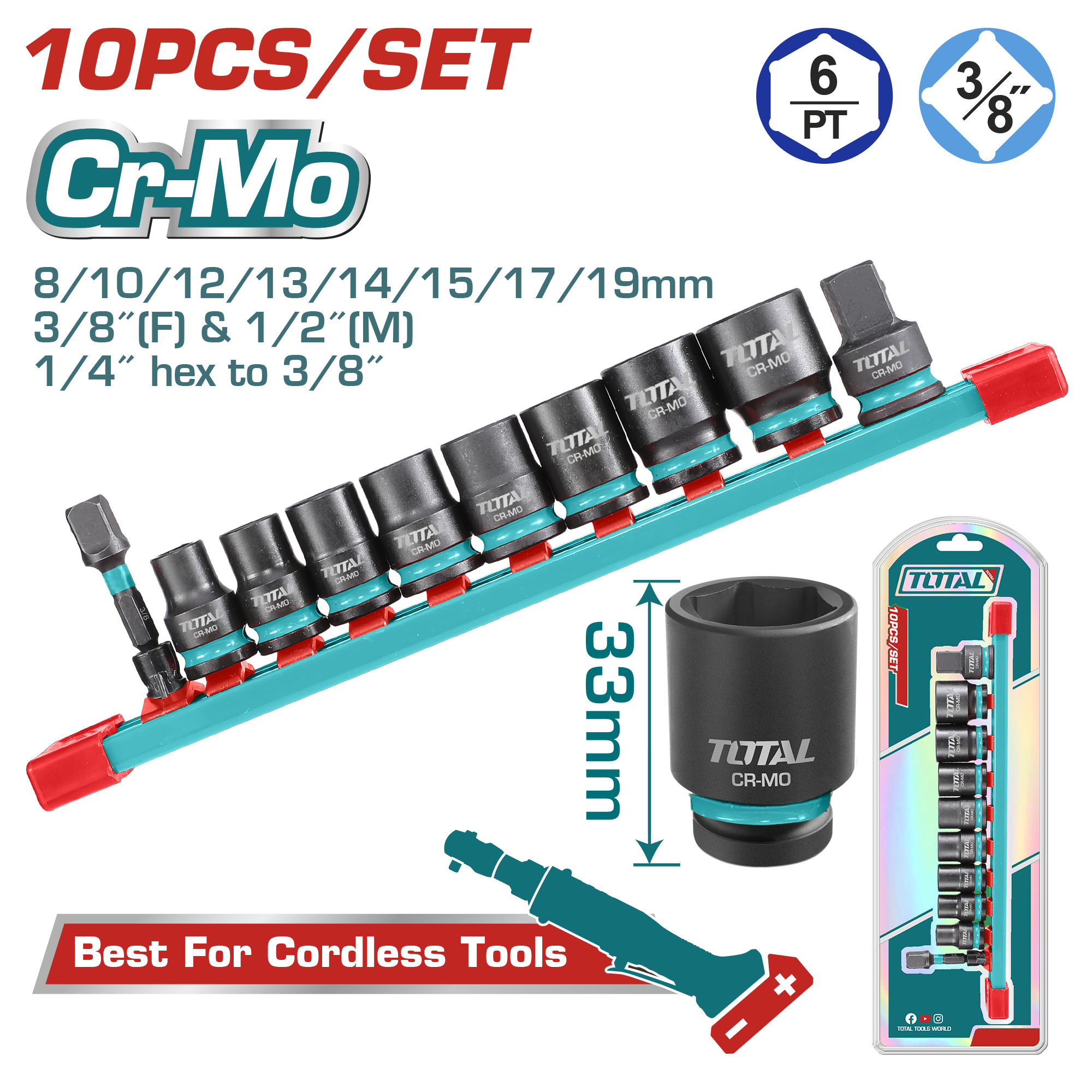 JUEGO DE LLAVES TUBO DE IMPACTO 3/8PULG 33MM (10 PZS) - TOTAL