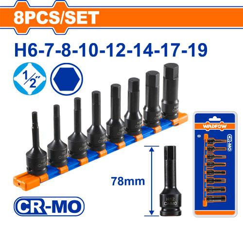 JUEGO DE LLAVES TUBO HEXAGONALES DE IMPACTO 1/2PULG (8 PZS) - WADFOW