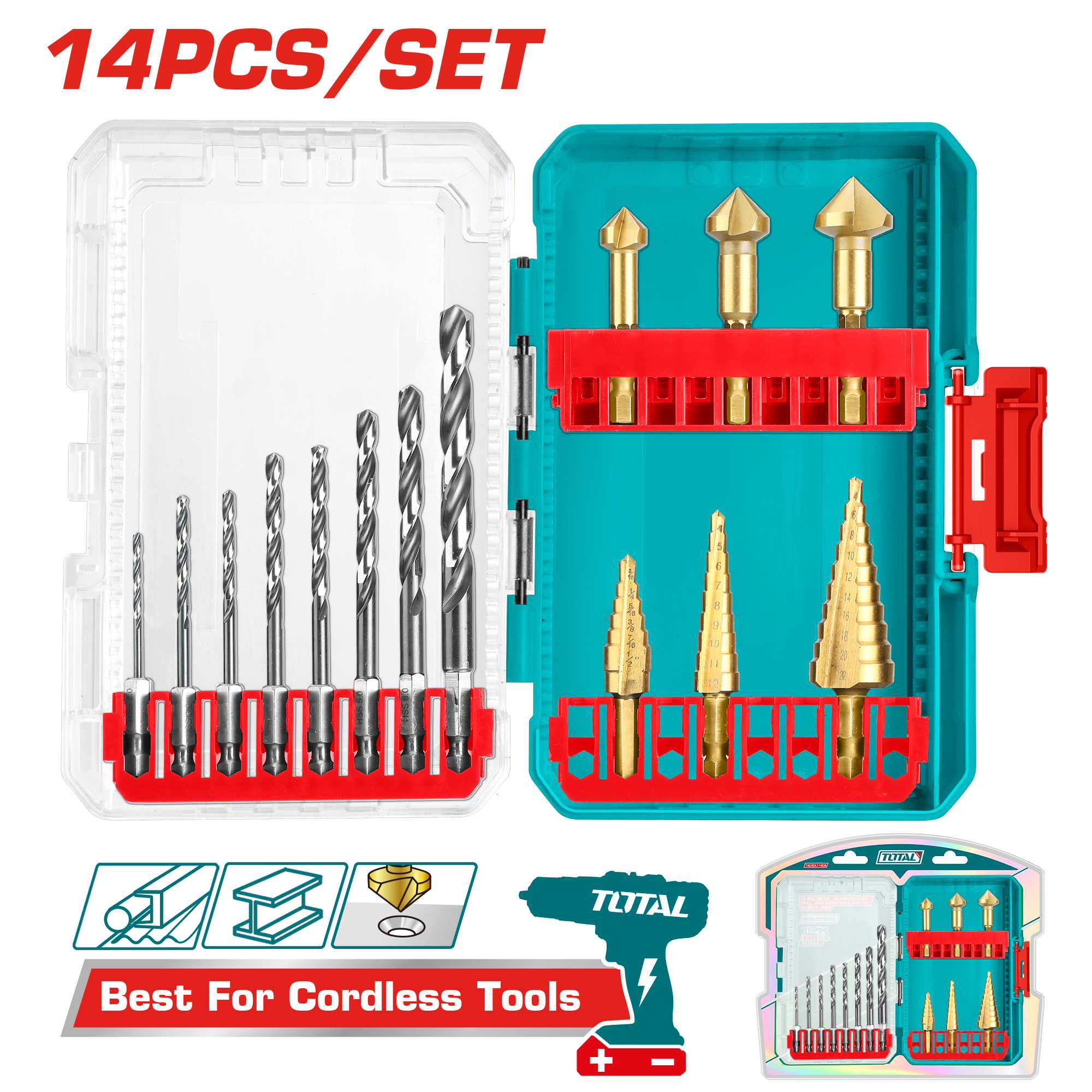 14 Pzs Juego de brocas HSS y brocas escalonadas