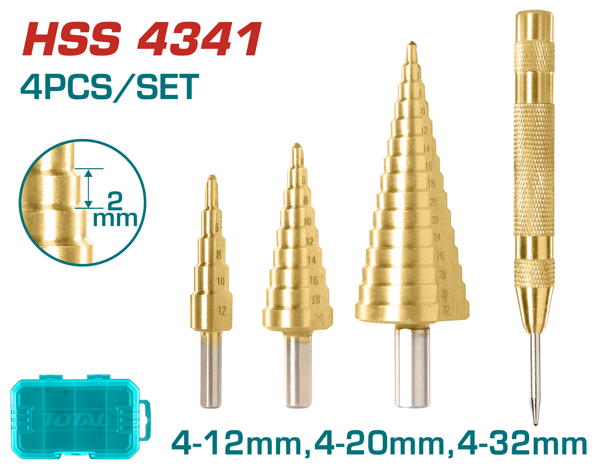 JUEGO DE MECHAS ESCALONADAS (3 PZS) Y PUNZON AUTO - TOTAL