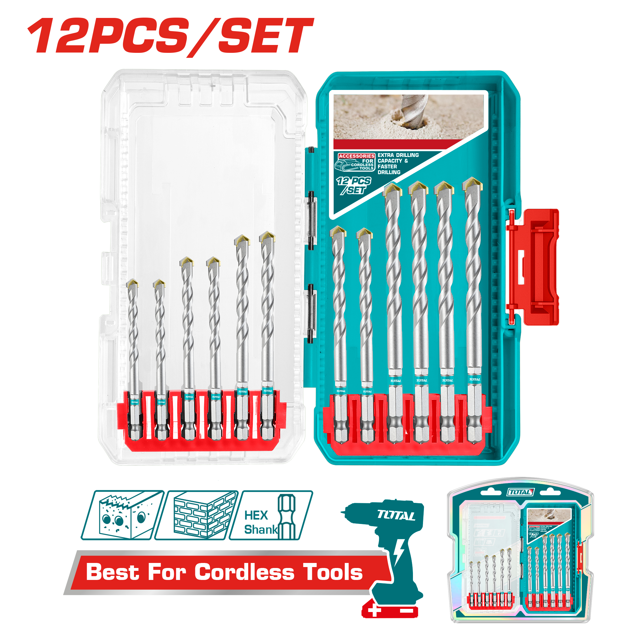 12 Pzs Juego de brocas para mampostería