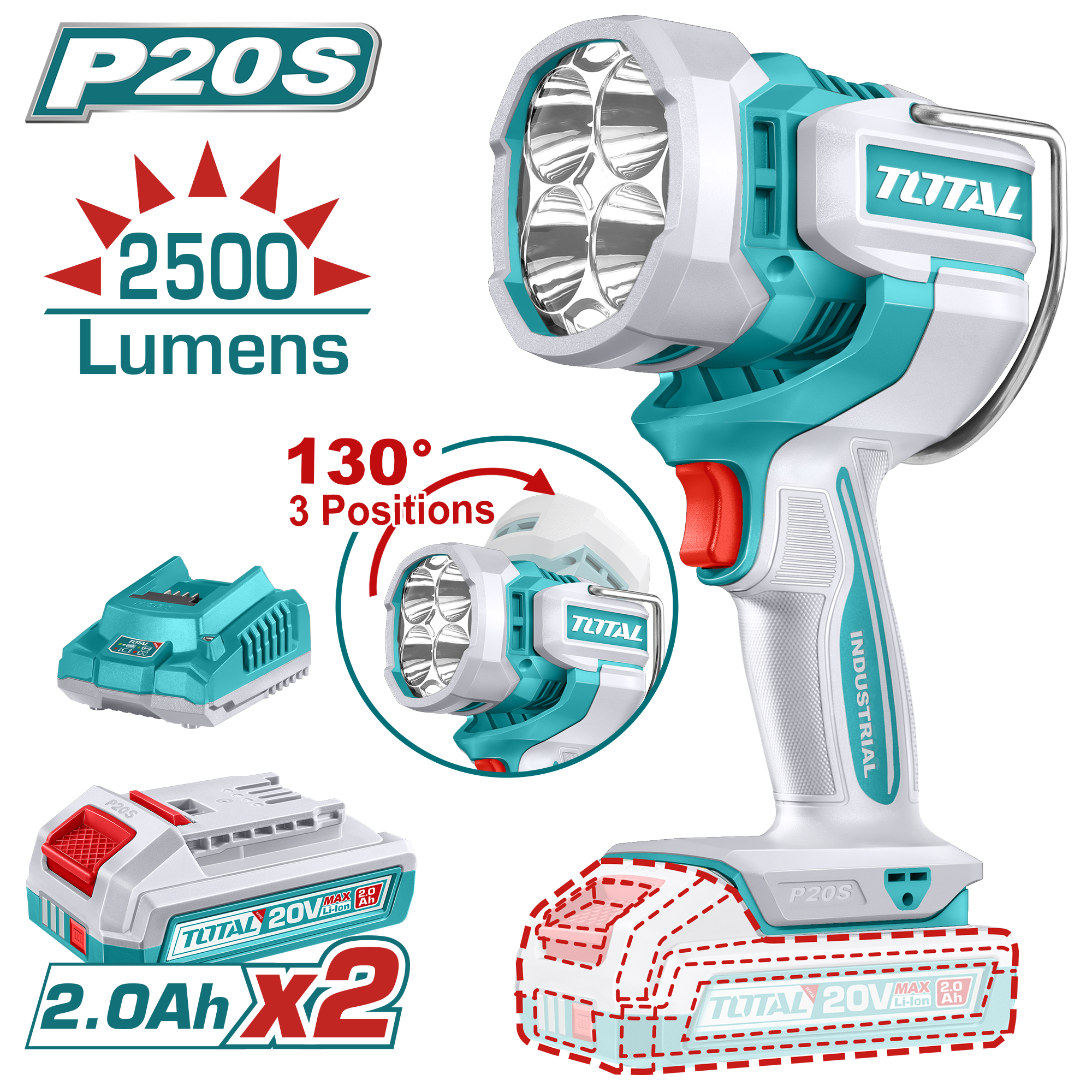 LAMPARA DE TRABAJO A BATERIA 20V 2500LM - 2BAT/CAR - TWLI20887 - TOTAL
