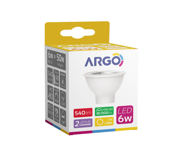 LAMPARA LED 6W LUZ CALIDA MAX ARGO
