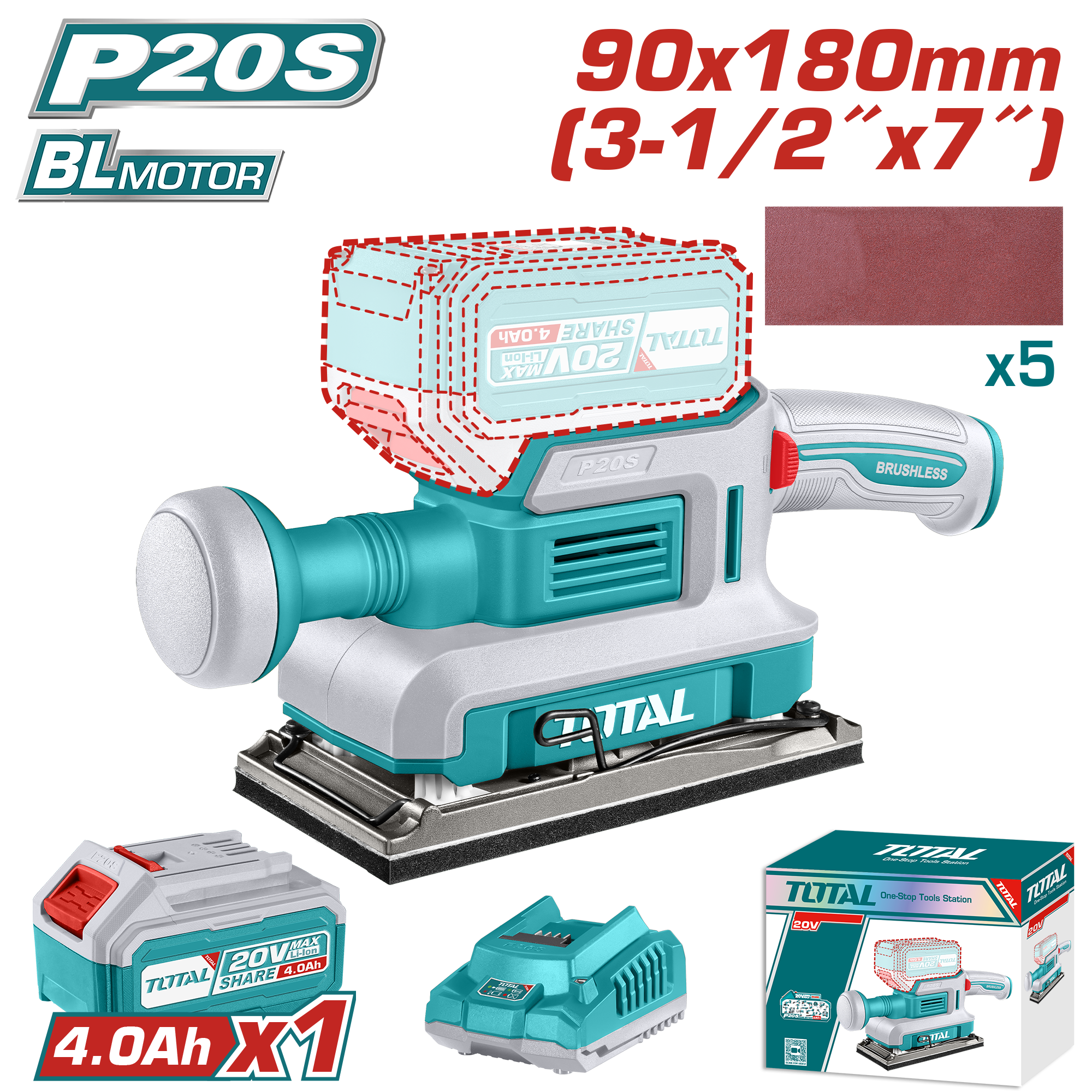 LIJADORA ORBITAL RECTANGULAR (DE ACABADO) 90X180MM - BAT/CAR - TFSLI20311 - TOTAL