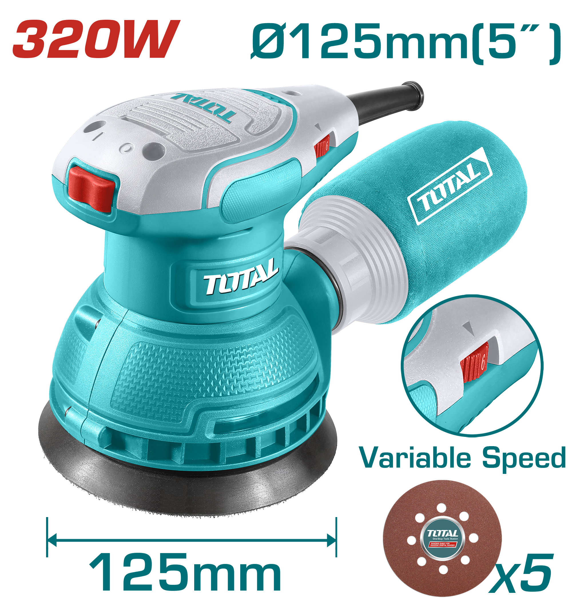 LIJADORA ROTORBITAL 320W 125MM - TF2131256 - TOTAL