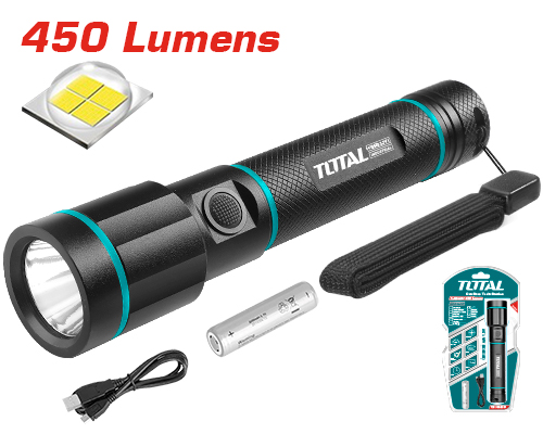 LINTERNA DE BOLSILLO A PILAS LUMINOSIDAD AJUSTABLE 450LM - TOTAL