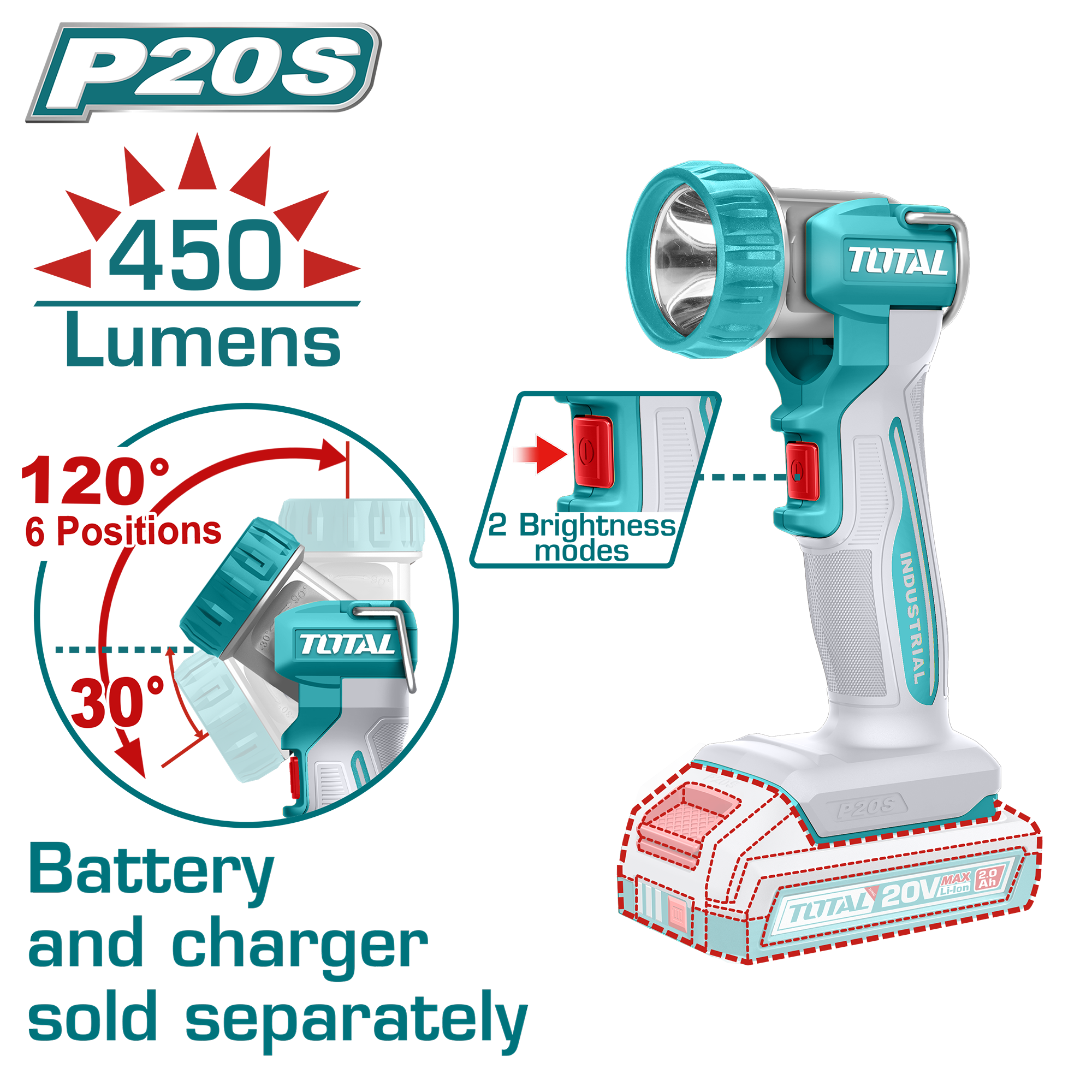 LINTERNA DE TRABAJO A BATERIA 20V 8W - SIN BATERÍA - TOTAL