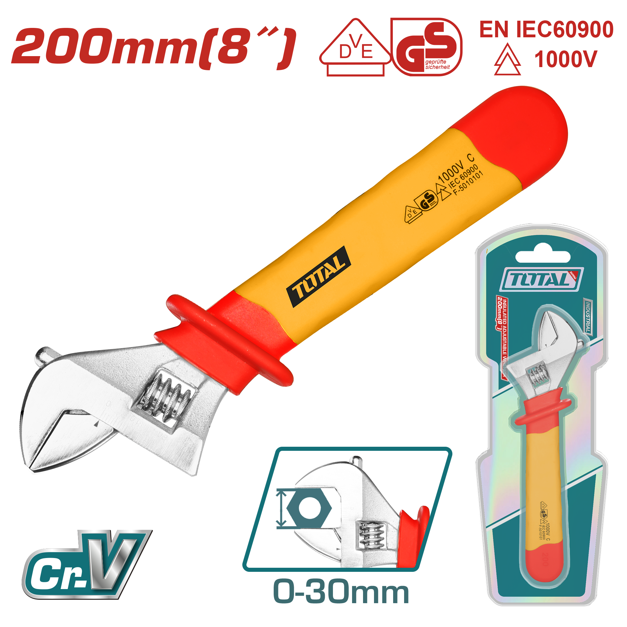 LLAVE AJUSTABLE 200MM AISLADA 1000V - TOTAL