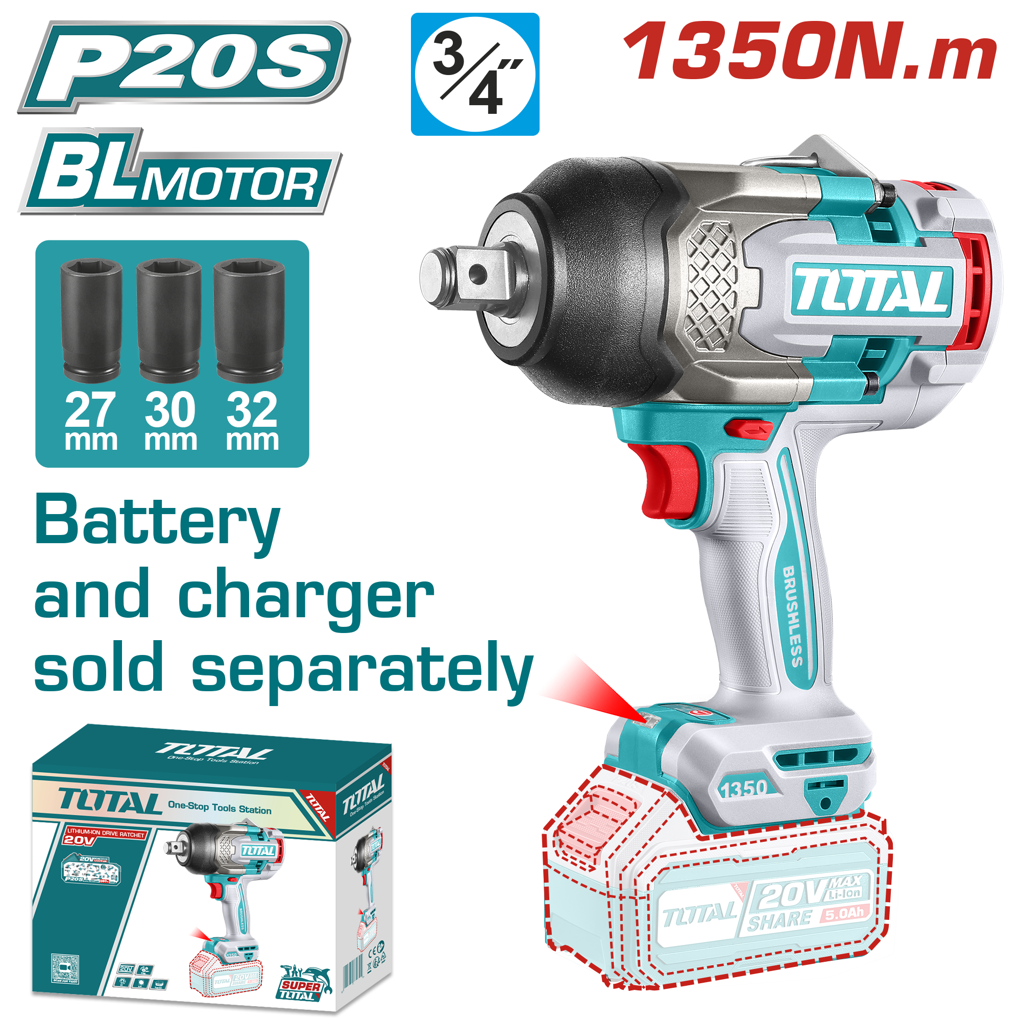LLAVE DE IMPACTO A BATERÍA 20V 1350NM (3/4 PULG) BL - SIN BAT- TIWLI201351 - TOTAL