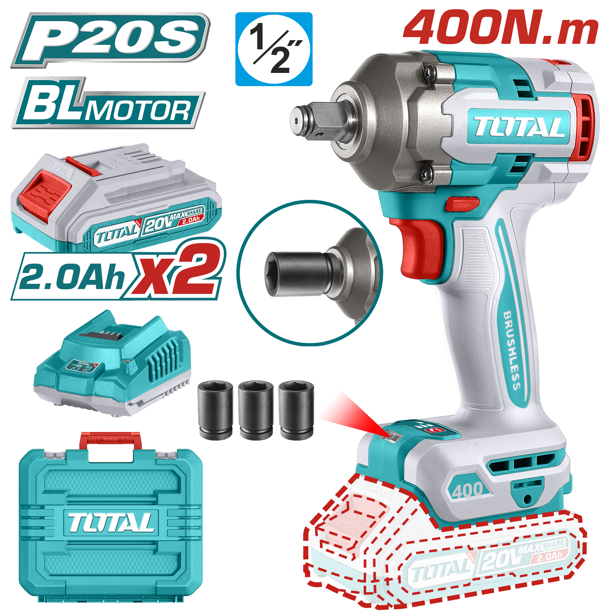 LLAVE DE IMPACTO A BATERÍA 20V 400NM BL - 2BAT/CAR - TIWLI2040 - TOTAL