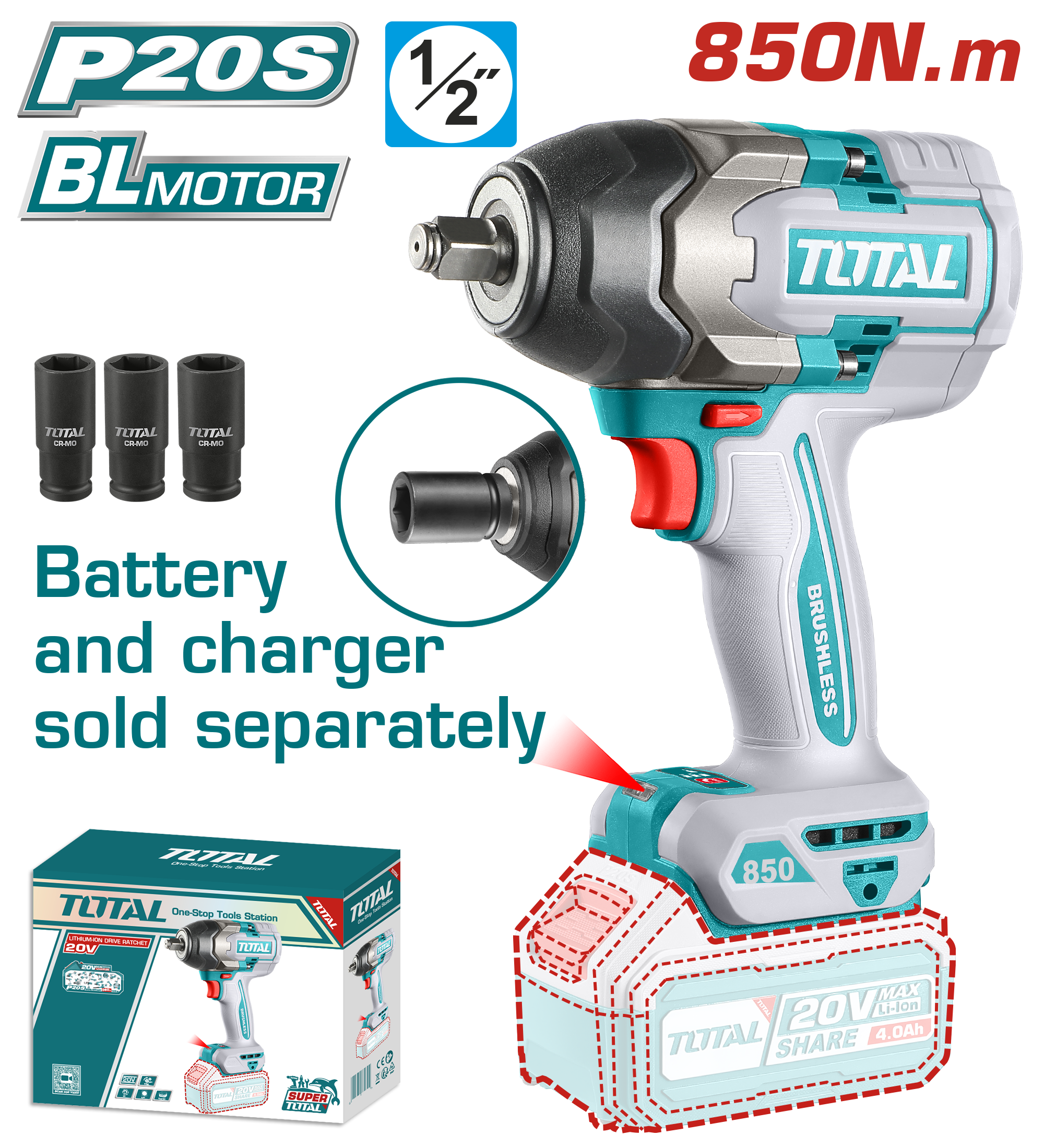 LLAVE DE IMPACTO A BATERÍA 20V 850NM BL - SIN BAT - TIWLI20851 - TOTAL