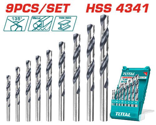 Juego de brocas helicoidales HSS 4341 de 9 piezas