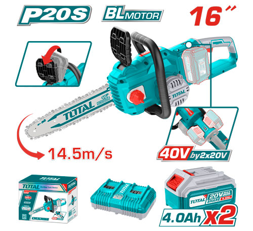 MOTOSIERRA A BATERIA 20+20V BL 40CM (16 PULG) - 2BAT/CAR - TGSLI401682 - TOTAL