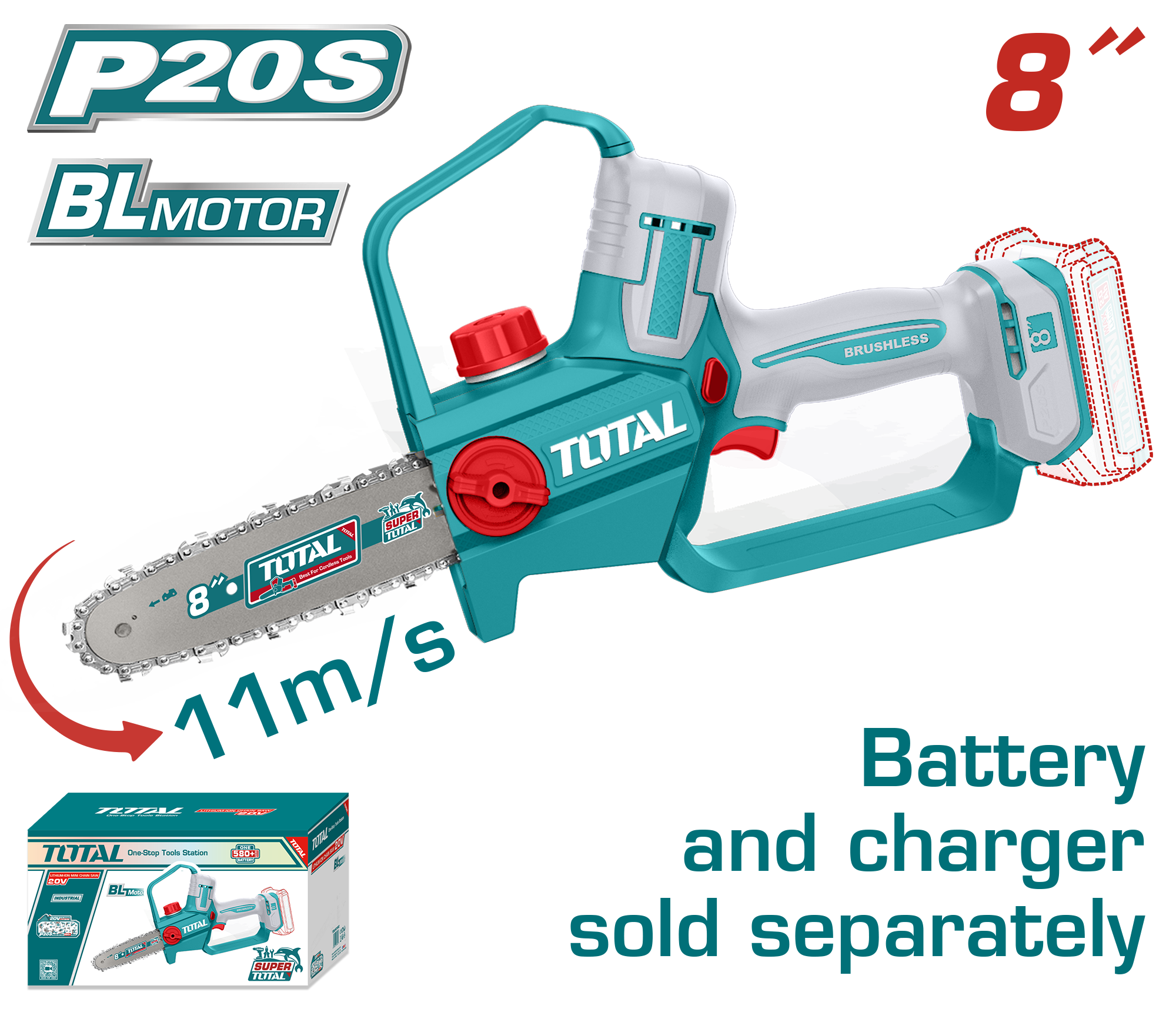 MOTOSIERRA A BATERIA 20V 20CM (8 PULG) BL - SIN BAT - TGSLI2088 - TOTAL