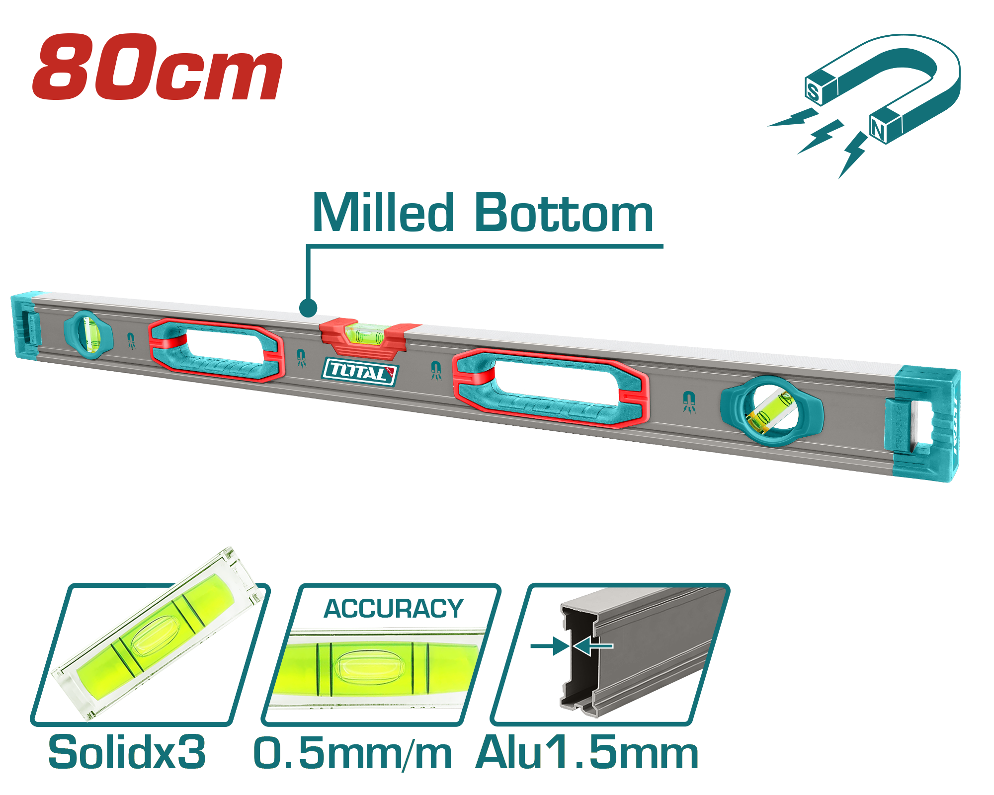 NIVEL DE MANO (BURBUJA) REFORZADO 80CM CON IMANES - TOTAL