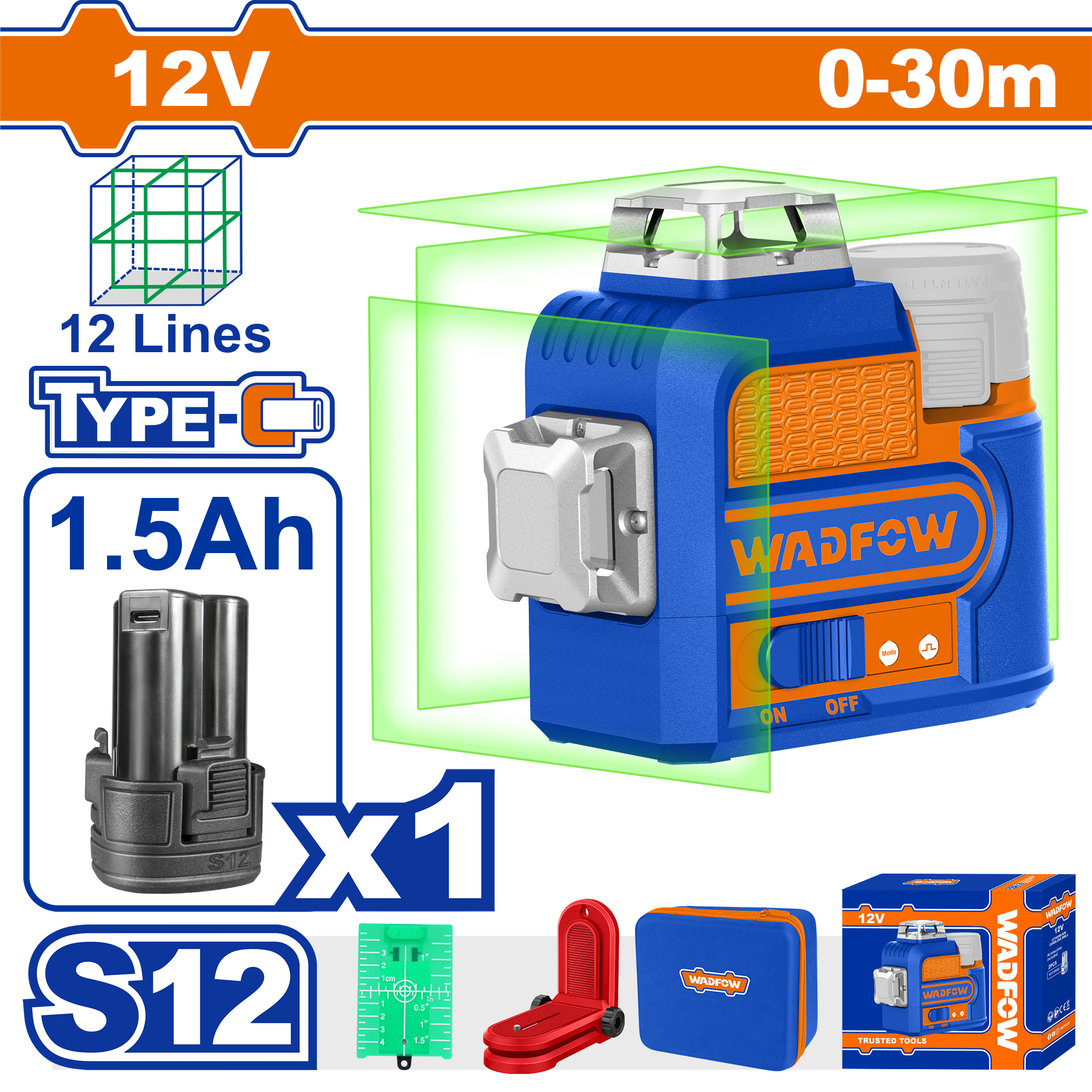 NIVEL LÁSER AUTONIVELANTE 30M - LÍNEAS 8 VERTICAL 4 HORIZONTAL (VERDE) - WLE8M12 - WADFOW